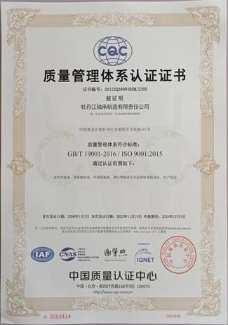 質(zhì)量認證書